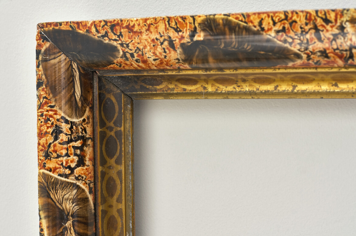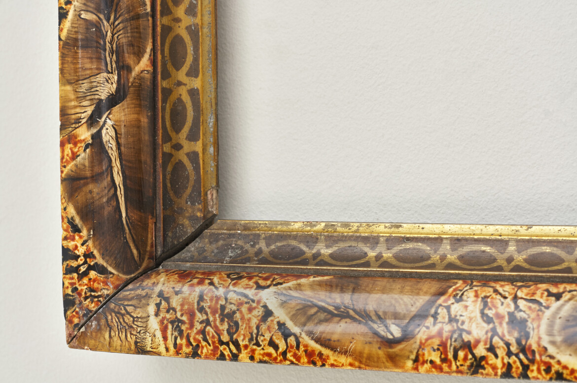A charming nineteenth-century picture frame decorated with faux marble and feathers. Circa 1850.
