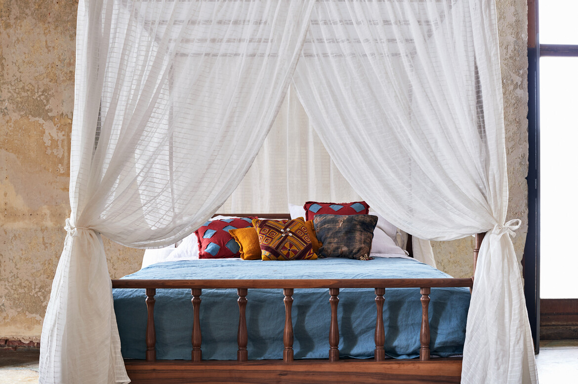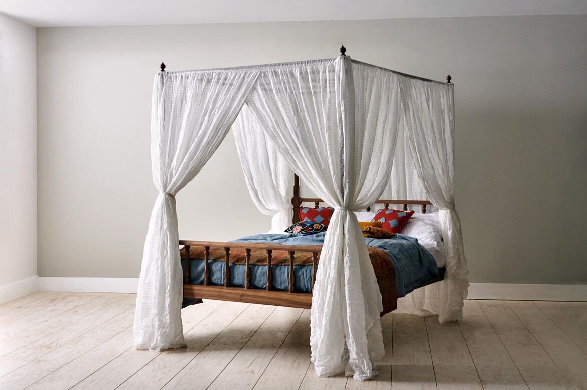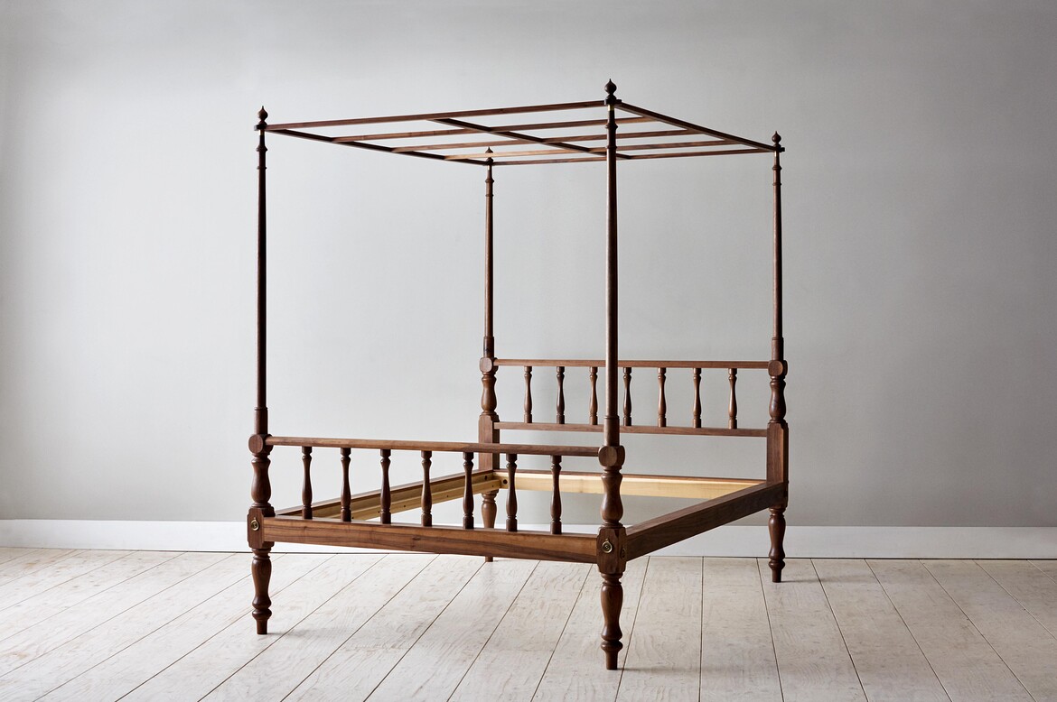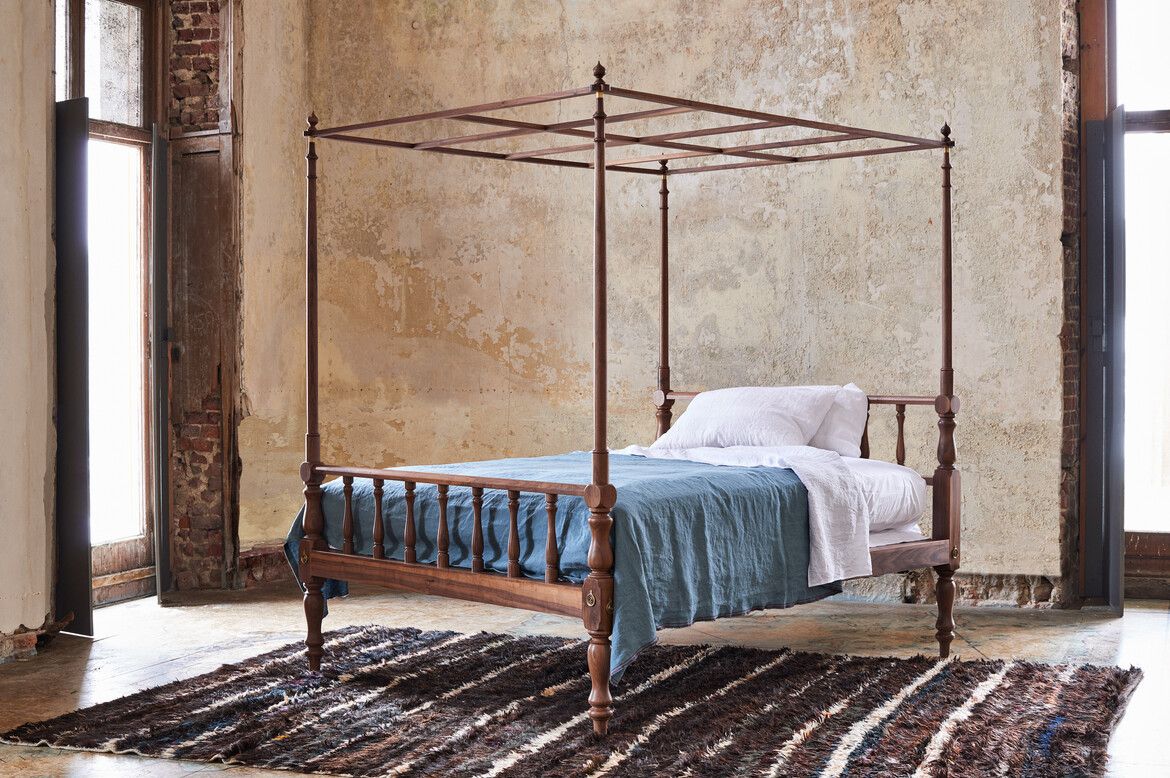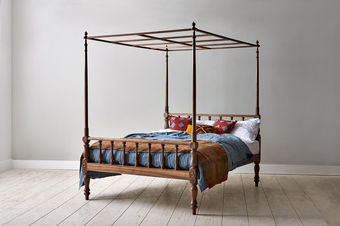 Based on a true copy of a very elegant and simple Goan bed Max saw while staying with friends, the Bala Bed works beautifully both pared back to showcase the handcrafted wooden frame or covered with a canopy. The bed is made in walnut with turned balustrading to the head and foot boards.