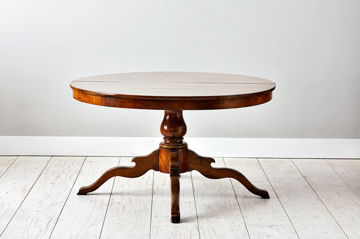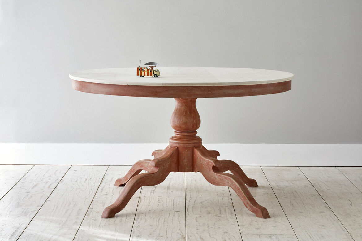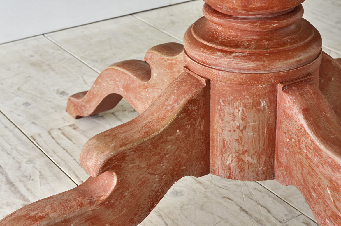 The Galloping Table is based on a Piedmontese centre table (circa 1790) but reimagined with a sycamore top and a patinated red painted base.