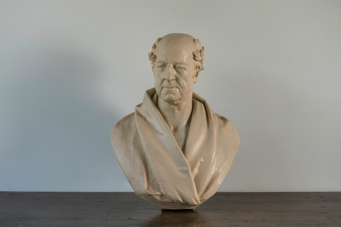 A plaster library bust of a distinguished gentleman. Signed to the rear 'Lord Rolfe, 1824'.