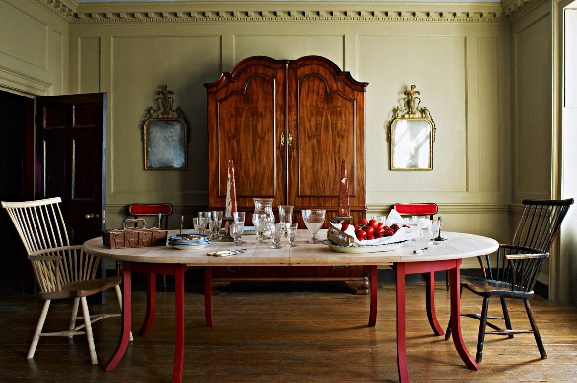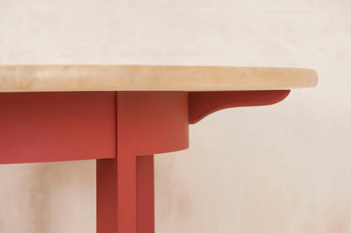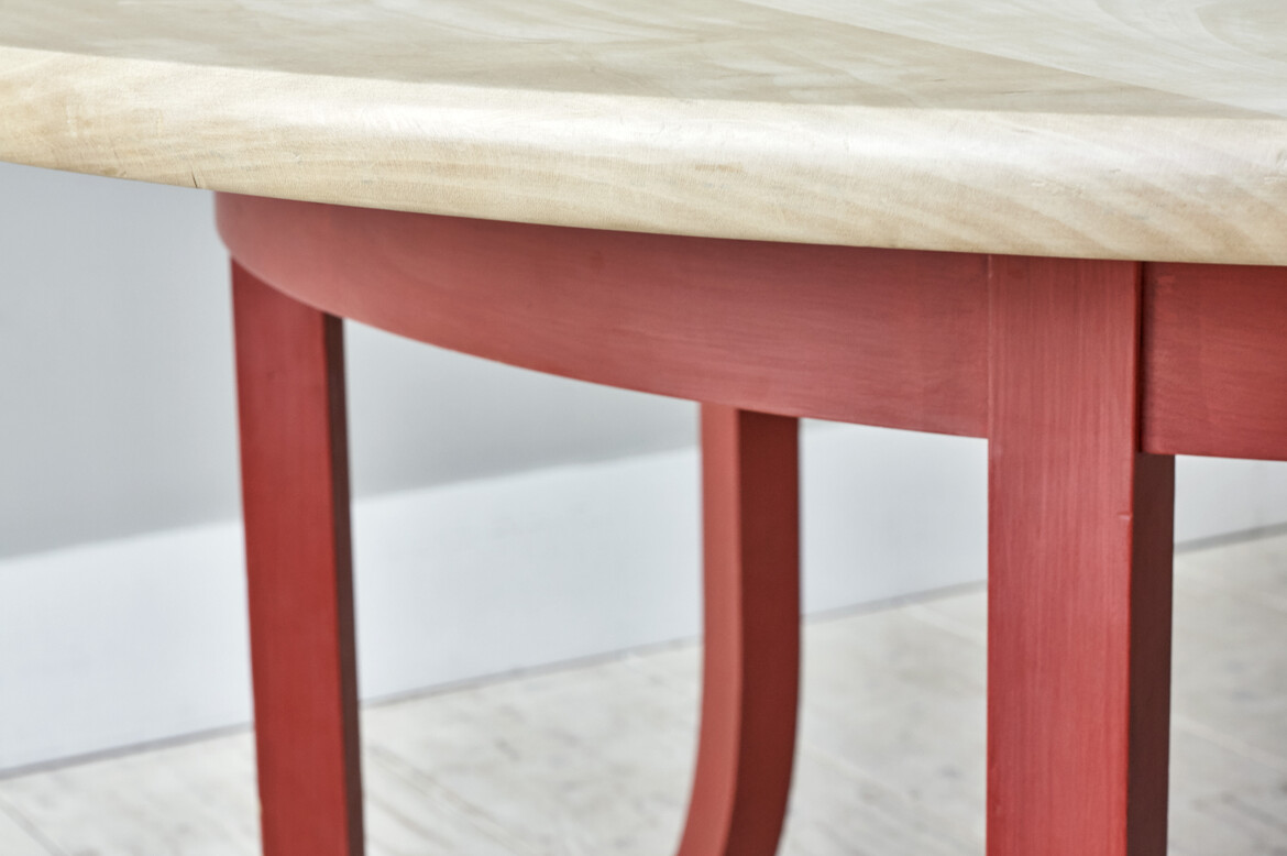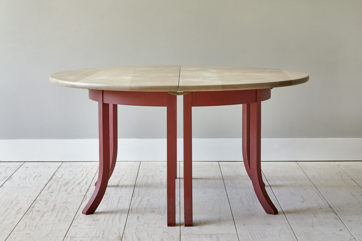 Handmade to order by skilled craftsmen, the extending Tumnus Table has a scrubbed raw sycamore top and painted tulipwood legs. The standard length is 269cm when fully extended (including two leaves at 58cm per leaf). Different sizes, finishes and colours are all possible. A solid walnut Tumnus Table is also available.